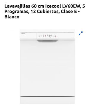 Lavavajillas Icecool de 60 cm en color blanco. - Capacidad para 12 cubiertos. - Cuenta con 5 programas de lavado. - Clasificación energética Clase E.