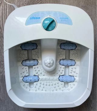 Máquina de hidromasaje para pies de la marca Ufesa. Diseñada para ofrecer un masaje relajante. - Incorpora rodillos para masaje. - Base con relieve para estimular la planta del pie.