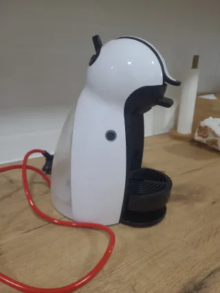 Cafetera Dolce Gusto en color blanco y negro. Un diseño moderno y compacto para tu cocina. - Diseño elegante en blanco y negro. - Cable de alimentación rojo.