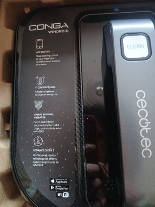 Robot limpiacristales Cecotec Conga Windroid. - Control total de limpieza desde tu móvil con la App. - Navegación inteligente iTech WinSquare. - Tecnología Smart Mopping Vibrator para suciedad difícil. - Resultados profesionales con Advance Clean 5.