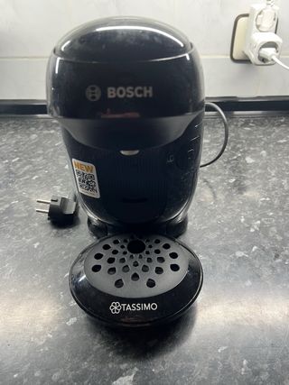 Cafetera compacta de la marca Bosch, modelo Tassimo. - Color negro. - Diseño moderno y elegante. - Bandeja extraíble para tazas de diferentes tamaños. Muy poco uso, la vendo por cambiar a una súper automática!