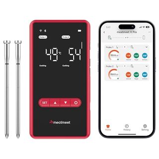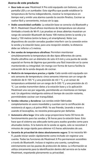 TODOS NUESTROS PRODUCTOS SON COMPLETAMENTE NUEVOS Y CON DESCUENTOS BRUTALES. IMPORTANTE: 1. Precio Fijo no negociable. No respondemos a mensajes de regateo. 2. No comunicamos fuera de la plataforma: no pidan eMail o teléfono. DESCRIPCION COMPLETA EN LA SEGUNDA IMÁGEN Meatmeet X Pro Termómetro para Carne con Bluetooth y WiFi, 2 Sondas 6 Sensores, Pantalla LED, IP69 Impermeable