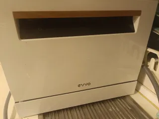 Lavavajillas compacto para colocar sobre la encimera. Diseño moderno con acabado en blanco y detalle superior en madera. Con instrucciones y caja - Marca: evvo - Color: Blanco Medidas 55 ancho , 52 profundo ,43 alto