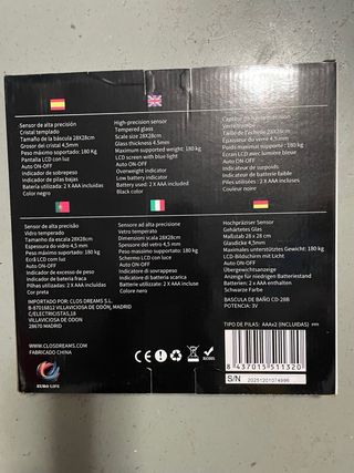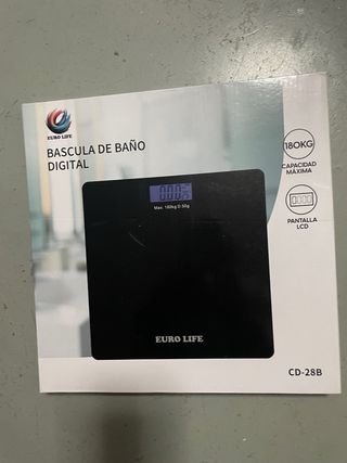 Báscula de baño digital de la marca Euro Life. Diseño moderno y elegante. - Capacidad máxima de 180 kg. - Pantalla LCD. - Modelo CD-28B.