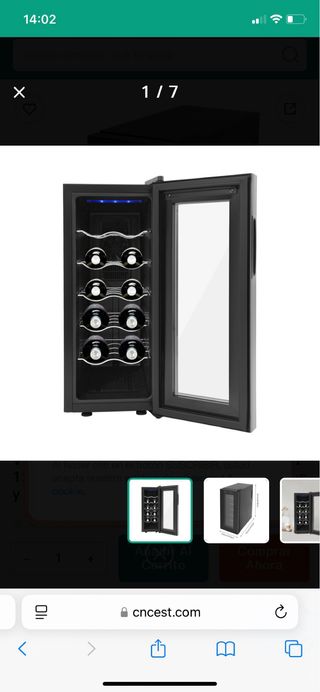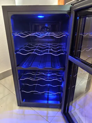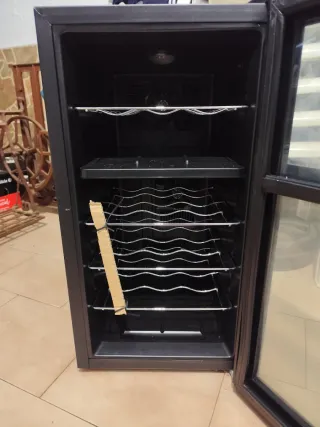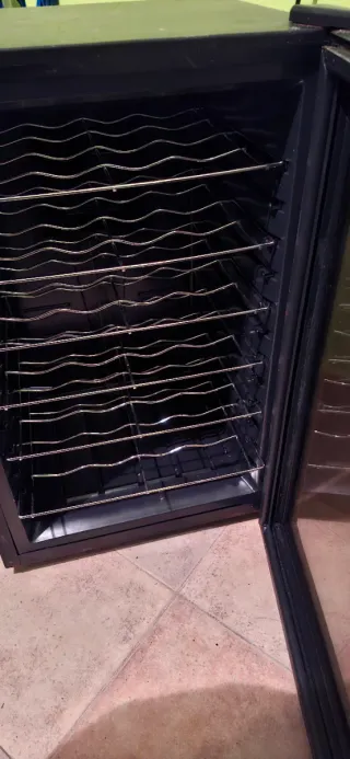 Vendo vinoteca My Wave en muy buen estado, ideal para conservar vinos a la temperatura perfecta. ✅ Doble zona de temperatura (Upper zone / Lower zone) ✅ Puerta de cristal elegante ✅ Baldas metálicas para varias botellas ✅ Control digital de temperatura ✅ Diseño moderno en color negro Perfecta para salón, cocina, bodega o negocio. Funciona correctamente y enfría muy bien. Se vende por no usar. 📦 Se puede ver sin Nevera para vinos My Wave con doble zona de temperatura. Ideal para conservar tus botellas en las condiciones perfectas. - Diseño moderno en color negro. - Puerta de cristal. - Dos zonas de enfriamiento independientes.