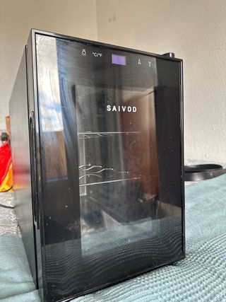 Vinoteca de la marca SAIVOD. Muy poco uso. 6 botellas. Funciona perfectamente. Pocas horas en funcionamiento.