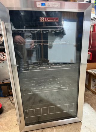 Vinoteca de la marca La Sommeliere, modelo LS33. Cuenta con un diseño moderno y elegante, ideal para conservar tus vinos. - Puerta de cristal. - Estantes interiores. - Panel de control digital. En buen estado,enfriando perfectamente. A recoger en pontejos o posibilidad de entregar en bilbao o alrededores.
