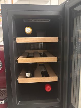 Vinoteca Taurus con capacidad para 15 botellas. Ideal para mantener tus vinos a la temperatura perfecta. - Diseño elegante con puerta de cristal. - Estantes cromados. - Panel de control digital. - Luz interior