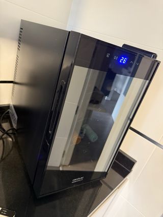 Vendo esta vinoteca MECO MAX. Está en buenas condiciones, aunque tiene algunas marcas de uso. - Capacidad para 18 botellas. - Control de temperatura digital. - Diseño elegante y compacto.