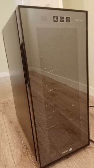 OPORTUNIDAD!! Vinoteca de la marca FAGOR, modelo Vintage (MOD VT-12). Muy buena marca en este tipo de electrodomésticos. Comprada en el Corte Inglés. Está nueva, sólo se ha usado dos veces. - Diseño moderno y elegante, muy compacto (en un pequeño espacio, alberga mucha capacidad-para 12 botellas, 5 bandejas-). - Puerta de cristal-espejo, muy discreta - Silenciosa, no vibra. Ésta y su anterior característica permiten ubicar el aparato en el salón si así se desea. - Panel de control digital y táctil, marcando la temperatura real y constante del interior. Venta también presencial. Sin compromiso.