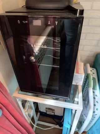 Vinoteca Saivod en color negro. Ideal para mantener tus vinos a la temperatura perfecta. - Capacidad para varias botellas. - Diseño compacto. OJO AVERIADA PARA PIEZAS SUENA ENCIENDE PERO NO ENFRIA.
