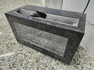 Expositor horizontal para vinos, diseñado para colocar sobre una mesa - Ideal para exhibir botellas - Diseño moderno en color negro. - Panel digital con control de temperatura. - capacidad 5 cinco botellas - apto para sobremesa Rango de temperatura de 12°C a 18°C - marca Alcorta - tiene algunas trazas de uso que se pueden arreglar con algo de manualidad - a recoger en zona ciudad jardín, MALAGA capital - necesita una pequeña limpieza - estafas abstenerse - ideal para hostelería, negocio, restaurante, cafetería bar vinoteca tienda de vinos taberna meson Medidas Alto 33cm Ancho 55,5cm Largo 26,5cm