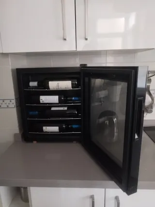 Vinoteca Klastein en perfecto estado, con capacidad para 4 botellas. - Diseño moderno y compacto. - Ideal para mantener tus vinos a la temperatura perfecta. Frontal tipo espejo
