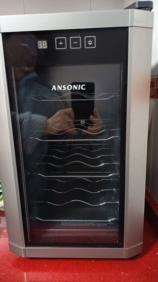 Vinoteca de la marca Ansonic con capacidad para varias botellas. - Diseño moderno y elegante. - Puerta de cristal. - Estantes interiores.