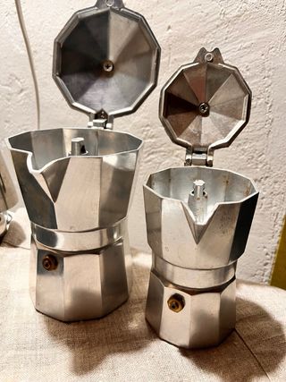 Se venden dos cafeteras italianas tipo moka en muy buen estado. Limpias, funcionan perfectamente. Ideales para café espresso en casa. Se venden juntas.