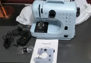 Máquina de coser Magicfly con 12 puntadas, ideal para proyectos de costura.Con asa para fácil transporte. Fácil de utilizar y muy efectiva. Uso manual con pedal y automático. - Incluye funda protectora. - Viene con accesorios. - Manual de instrucciones incluido en varios idiomas muy bien explicado con imágenes. -Con pedal,presantelas, retroceso automático, cargador y todo lo de la foto. -Su precio 99€ .Usada 2 veces.Se vende por falta de uso. Tengo un vídeo de que funciona perfectamente.