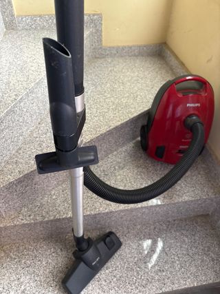 Aspiradora de la marca Philips en color rojo. - Diseño compacto y moderno. - Manguera flexible para mayor alcance.Recoge cable automatico al apretar un boton, - Incluye todos accesorio para suelos y moquetas. Regalo paquete de filtros entero que eso ya vale 13 euros Tengo la caja de la aspiradora tambien en perfecto estado