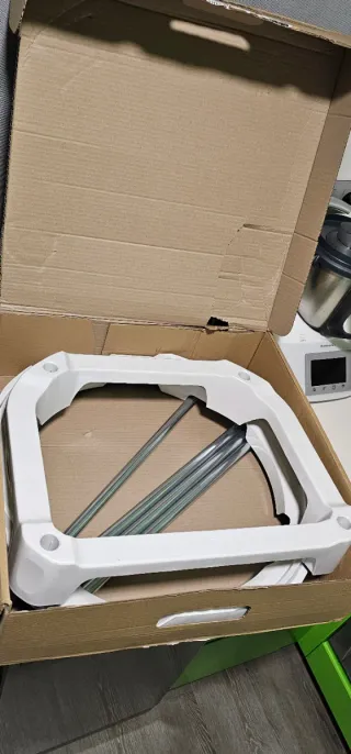 Soporte universal para calentador de agua para calentadores de 50cm de diámetro en adelante. - Estructura blanca. - Barras metálicas.
