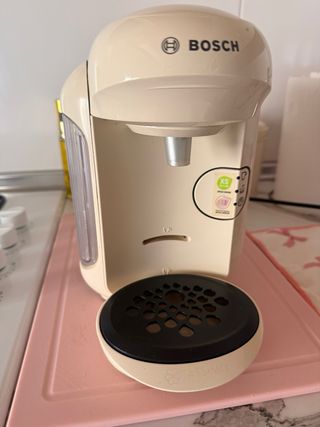 Cafetera compacta de la marca Bosch, modelo Tassimo, en color beige. Perfecto estado - Diseño moderno y elegante. - Ideal para preparar bebidas calientes.