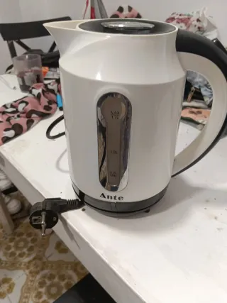 Hervidor de agua eléctrico de la marca Ante. Su diseño moderno y funcional lo hace ideal para cualquier cocina. - Capacidad máxima de 1.7 litros. - Indicador de nivel de agua. - Base giratoria de 360 grados. - Apagado automático.