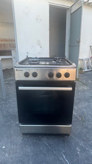 Cocina de gas con horno eléctrico. - Encimera de gas con quemadores. - Horno con puerta frontal. - Panel de control con mandos.