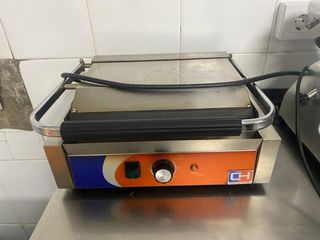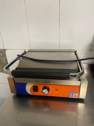 Plancha grill eléctrica profesional para hostelería. Ideal para preparar sándwiches, carnes y verduras. Medidas 41x37x21 - Construcción robusta en acero inoxidable. - Control de temperatura ajustable. - Indicador luminoso de encendido y calor.