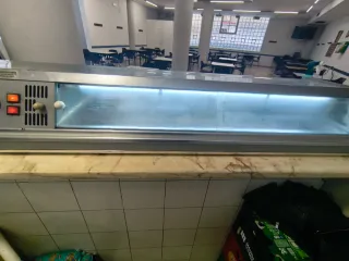 Vitrina refrigerante de tamaño compacto, ideal para exhibir productos. - Capacidad para 5 bandejas. - Diseño en acero inoxidable. -este precio viniendo a recojerla