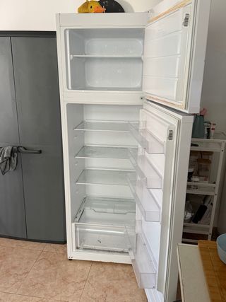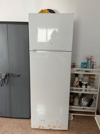 Nevera de dos puertas de la marca Icecool en color blanco. - Diseño clásico y funcional. - Parte superior con congelador y parte inferior con frigorífico. -La nevera funciona perfectamente pero tiene defectos estéticos debido a un producto de limpieza (adjunto fotos). A recoger en Xirivella