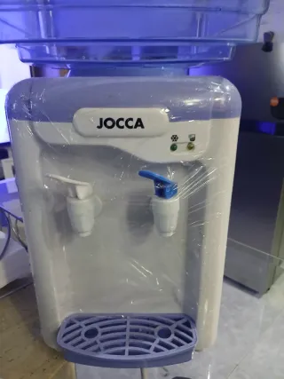 Dispensador de agua JOCCA con funciones de agua fría y caliente. Ideal para tener agua fresca o caliente al instante. - Diseño moderno en blanco y azul. - Dos grifos para dispensar agua. - Bandeja recolectora extraíble.