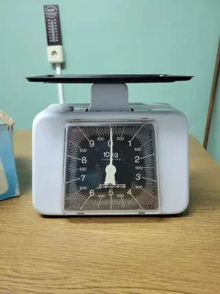 Báscula mecánica de cocina con una capacidad máxima de 10 kg. Ideal para pesar ingredientes con precisión. - Diseño clásico en color blanco. - Plato superior negro. - Graduación de 50 g.