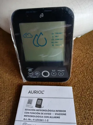 Estación meteorológica de interiores con pantalla digital y funciones de alarma. Permite monitorizar la humedad y temperatura del ambiente. - Indicador de Demasiado Húmedo, Húmedo, Confort, Seco y Demasiado Seco. - Función de alarma. - Botones para Dew Point, Set, On/Off, °C/°F y Max/Min.SIN ESTRENAR