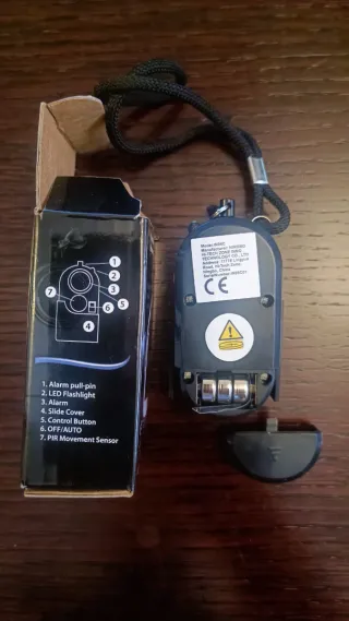 Alarma personal compacta para protección. - Diseño mini y portátil. - Sonido de 120dB para alertar. - Conveniente para llevar contigo. - Con sensor de movimiento hasta 3m - Colocar frente ha tienda de campaña, puerta,etc . Detecta cualquier movimiento a 3m de distancia y suena 15 segundos .