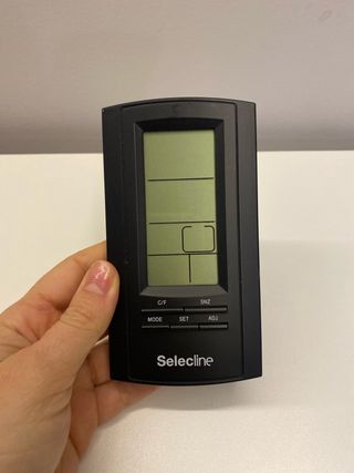Termostato digital con funciones de reloj y alarma. - Pantalla LCD. - Botones de control: C/F, SNZ, MODE, SET, ADJ. - Diseño moderno y compacto.