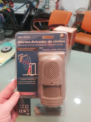 Alarma avisador de visitas con detector de movimiento. Es un dispositivo sin instalación. - Con control de volumen. - Alcance de 5 metros. - Ideal para comercios, garajes, patios, etc. - Funciona con 4 pilas R5-1'5V o adaptador 330mA/6V-AC. - Incluye brazo articulado 120º, tacos y tornillos. Precio 10 euros no negociable no realizamos envíos estamos en puerto de sagunto