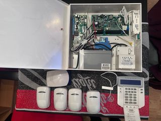 Kit de alarma Visonic Powermaster-360-R. Ha sido restaurada con los valores de fabrica, la configuracion y las claves. Hay mucha informacion en internet sobre su configuracion. Mando enlaces para el manual de instalador y el manual de usuario en Español