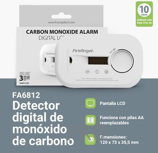 Fire Angel Detector de Monóxido de Carbono Digital con Pantalla LCD y Sensor de CO de 10 Años - Alarma de CO Portátil para Hogar, Vacaciones y Caravanas – FA6812
