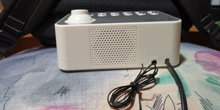 Despertador que proyecta la hora en la pared o el techo sin importar la distancia, se puede calibrar. También tiene estación meteorológica con temperatura, clima, humedad, etc. Se pieden poner alarmas, etc