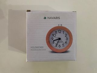 Navaris Reloj Despertador analógico - Alarma Despertador con luz y Sonido - Reloj Retro de Madera Natural Color marrón Claro - con función Snooze