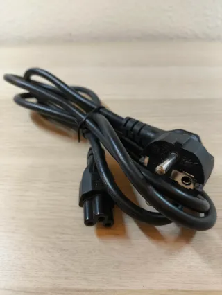 Cable de alimentación con conector tipo trébol C5. - Conector C5 (trébol) en un extremo. - Conector de enchufe europeo (Schuko) en el otro extremo.