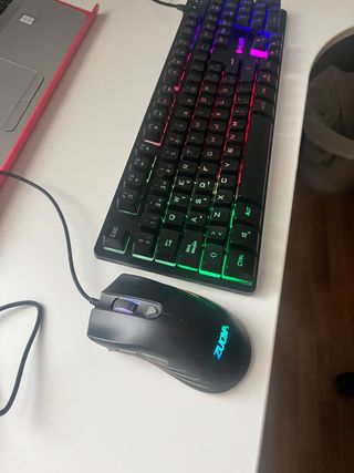 Conjunto de teclado y ratón para gaming con iluminación RGB. - Teclado con diseño retroiluminado. - Ratón ergonómico con logo ZUOYA.