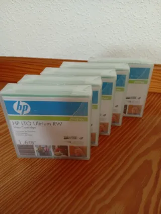Cartucho de datos HP LTO Ultrium RW. Son nuevos están sin quitar el precinto, precio por unidad 10€ no negociable. - Capacidad de 1.6TB. - Modelo C7974A.