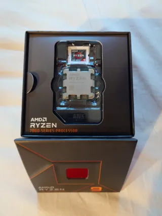 Procesador AMD Ryzen 9 7950X con 16 núcleos y 32 hilos hasta 5.7Ghz Muy cuidado, usado con refrigeracion liquida custom, undervolt y SMT desactivado para el mayor rendimiento por nucleo y temperaturas lo mas bajas posibles. Con su caja y accesorios. De lo mejor para tareas profesionales y si lo juntas con buena ram es una bestia para gaming tambien. Vendo una placa base tope de gama tambien, para quien le interese. AM5