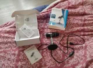 Usado poco. Microscopio digital portátil con base y cable USB. Incluye manual de instrucciones. Viene en su caja original. Ubicación: ALHAURÍN EL GRANDE (MÁLAGA). Segundo piso.