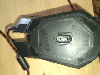 Ratón ColaCao original de promoción, modelo 42756, con 6 botones y diseño tipo gaming. Producto exclusivo incluido en packs oficiales, no vendido en tiendas. Funciona por USB (recomendado para PC). Presenta algunas marcas de uso en la parte superior visibles en las fotos. Ideal como ratón secundario, para colección o uso básico.