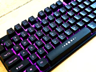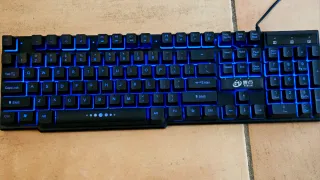 Teclado mecánico para gaming con retroiluminación LED personalizable. - Diseño compacto y robusto. - Teclas con respuesta táctil. - Iluminación LED en varios modos. Teclado gaming en perfecto estado, muy limpio. Dispone de retroiluminación multicolor (azul/roja8/púrpura) ajustable. Teclas con buen tacto y respuesta rápida. Ideal para setup gaming económico.