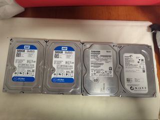 Vendo lote de 4 discos duros internos SATA para PC de sobremesa (3.5 pulgadas). Todos funcionan correctamente y han sido formateados. El lote incluye: 2x Western Digital Blue 500GB (7200 RPM). 2x Seagate Barracuda 500GB (7200 RPM). Ideal para ampliar almacenamiento, copias de seguridad o servidores tipo NAS. Hago envíos rápidos y bien protegidos.