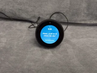 Vendo Amazon Echo Spot de 1ª generación en color negro. Está en perfecto estado estético y de funcionamiento, muy cuidado y sin marcas en la pantalla. Lo mejor de este modelo: Pantalla circular táctil: Ideal para la mesita de noche o el escritorio. Cámara integrada: A diferencia del modelo nuevo, este sí permite hacer videollamadas y usar la función "Drop-In" para ver qué pasa en casa. Sonido Alexa: Controla tu música, luces, persianas y hazle cualquier pregunta. Privacidad: Botón físico para desconectar micrófonos y cámara. Incluye: Dispositivo Echo Spot. Cable de alimentación original.