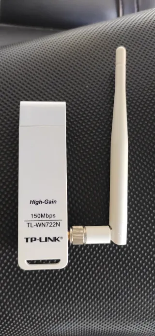 Adaptador WiFi USB de alta ganancia para mejorar la conexión inalámbrica. - Velocidad de hasta 150Mbps. - Modelo TL-WN722N. - Antena externa para mayor alcance.