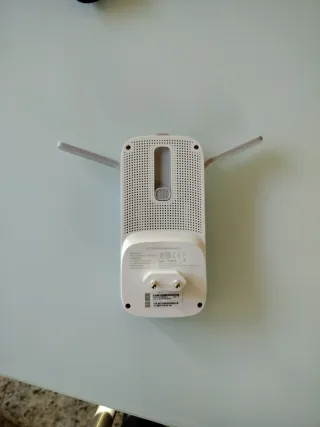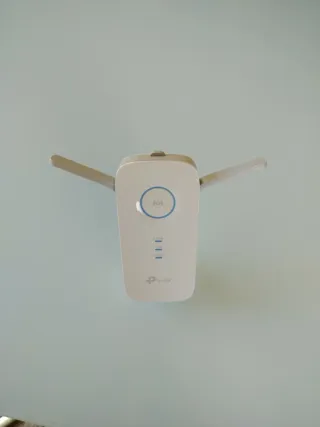 Extensor de alcance WiFi TP-Link. - Diseño compacto para enchufar directamente a la pared. - Indicadores LED para una fácil configuración. Una de las antenas se sale pero aguanta bien en su posición. Funciona perfectamente