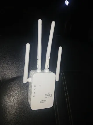 Repetidor / extensor WiFi Netgear en buen estado y totalmente funcional. Ideal para ampliar la cobertura WiFi en casa (habitaciones alejadas del router). 🔹 Doble antena externa 🔹 Botón WPS 🔹 Indicadores LED de estado 🔹 Conexión directa a enchufe 🔹 Reset de fábrica disponible Perfecto para mejorar señal en pisos o casas medianas. Se entrega tal cual se ve en las fotos. Precio ajustado para venta rápida. Entrega en mano o envío por Wallapop.